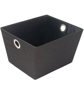 Organize every room of the home with these versatile storage bins! The medium size of these baskets makes them ideal for office accessories or CD storage. Or, use them in the closet for accessories or in the kids' room for toys. Made of polyester with satin nickel eyelet rings. Discover the many uses of these baskets around the home and office! Comes in black. Assembly level/degree of difficulty: No Assembly Required.