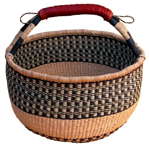 All these baskets are hand-woven by villagers in Africa using natural, locally available materials. By purchasing these baskets, you are helping to support many families of weavers. Large (16"-18" diameter), strong, durable, colorful and every one is unique, being entirely hand-made.